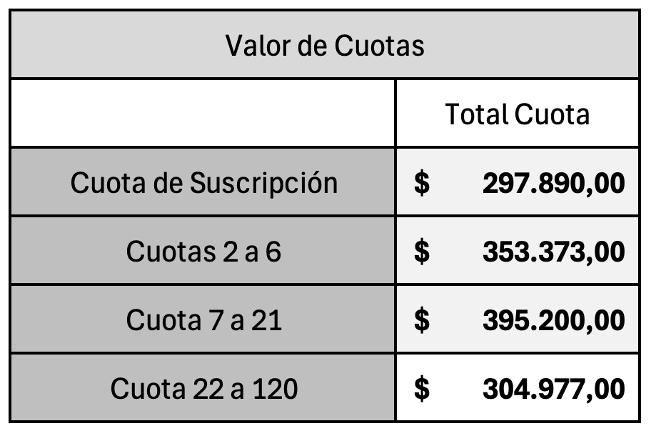 ¡ADJUDICACIÓN A PARTIR DE CUOTA 2 CON INTEGRACIÓN PREESTABLECIDA!