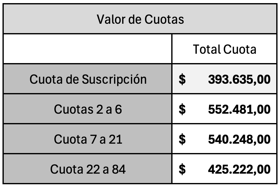 ¡ADJUDICACIÓN A PARTIR DE CUOTA 2 CON INTEGRACIÓN PREESTABLECIDA!