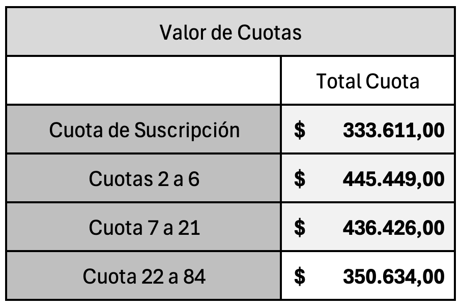 ¡ADJUDICACIÓN A PARTIR DE CUOTA 2 CON INTEGRACIÓN PREESTABLECIDA!