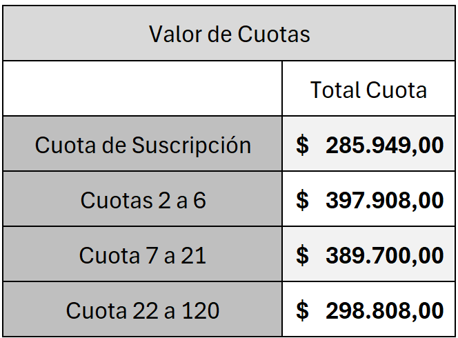 ¡ADJUDICACIÓN A PARTIR DE CUOTA 2 CON INTEGRACIÓN PREESTABLECIDA!